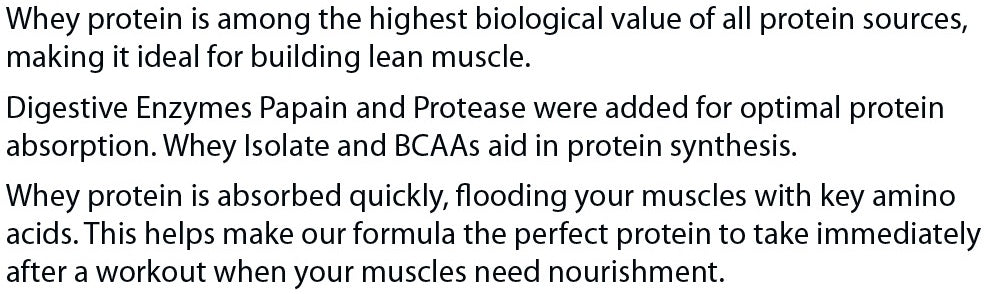 Absolute Whey has a nice blend of concentrated whey protein and isolated whey protein. These are just different forms of the same whey protein. The difference is how it is processed from its raw form. This simply changes its macro ratios of protein:fat:carbohydrates. Concentrates are more raw and unprocessed with more carbohydrates, fats and lactose. Isolates process some of that out leaving more raw protein. We kept it natural and very concentrate, but also wanted to give you a whole lot of protein??!